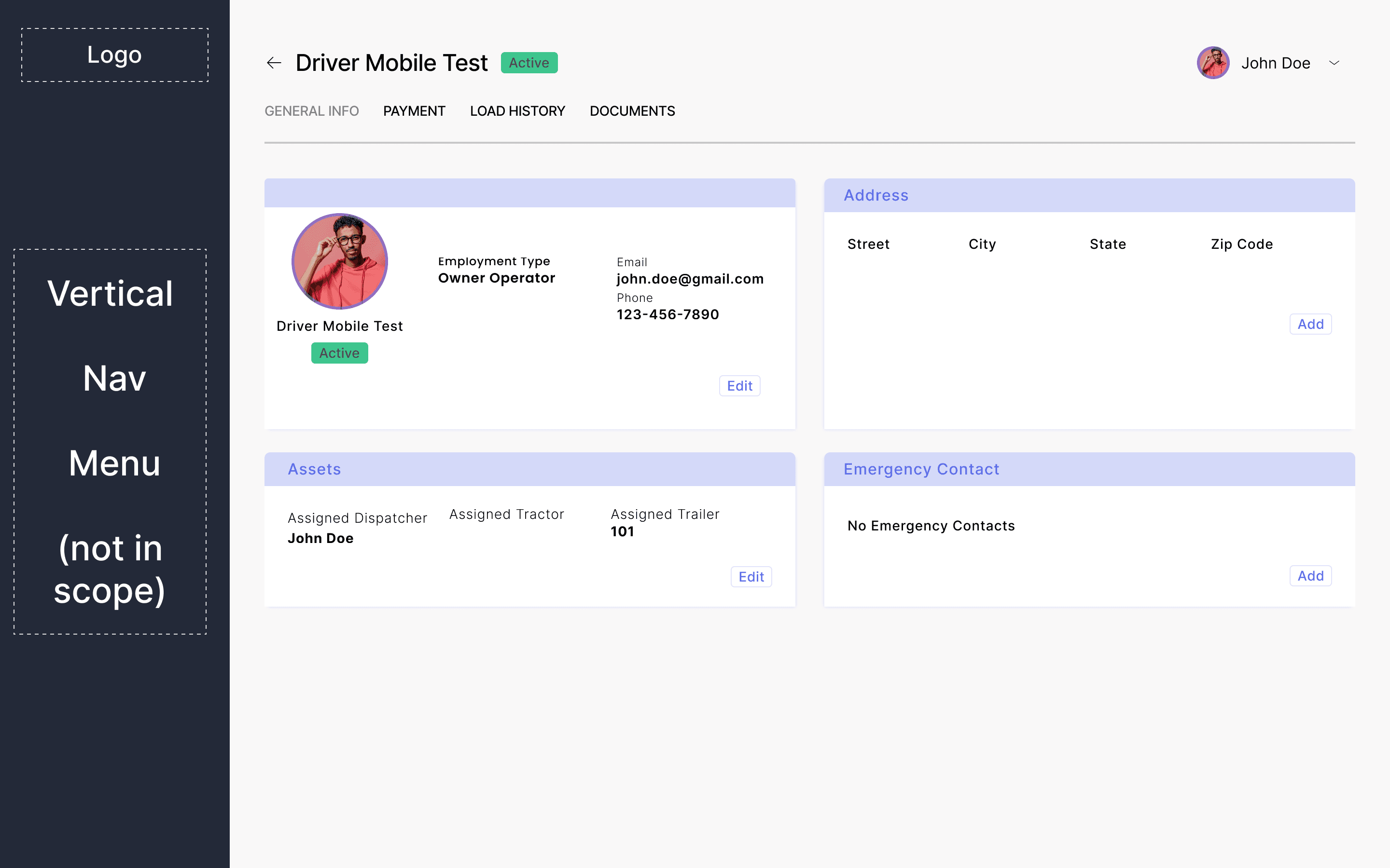 This screen serves as the main entry point to the driver profile, providing quick access to key information, status, and related workflows.